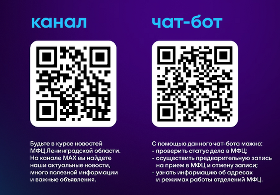 Официальный чат-бот МФЦ Ленинградской области доступен по ссылке: https://max.ru/mfclenobl_max_bot и отмечен синей галочкой официальной верфикации, что гарантирует его надежность и безопасность персональных данных.