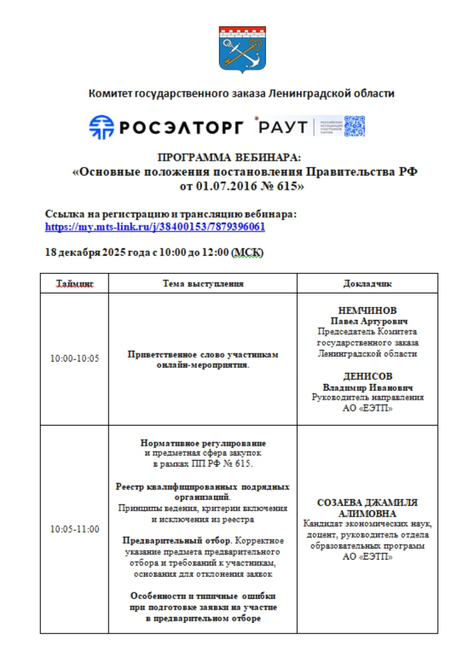 Вбеинар «Основные положения постановления Правительства РФ от 01.07.2016 №615»